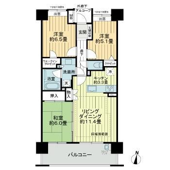 | 間取内訳 | LDK14.7畳 / 洋室6.5畳 / 洋室5.1畳 / 和室6畳 |
